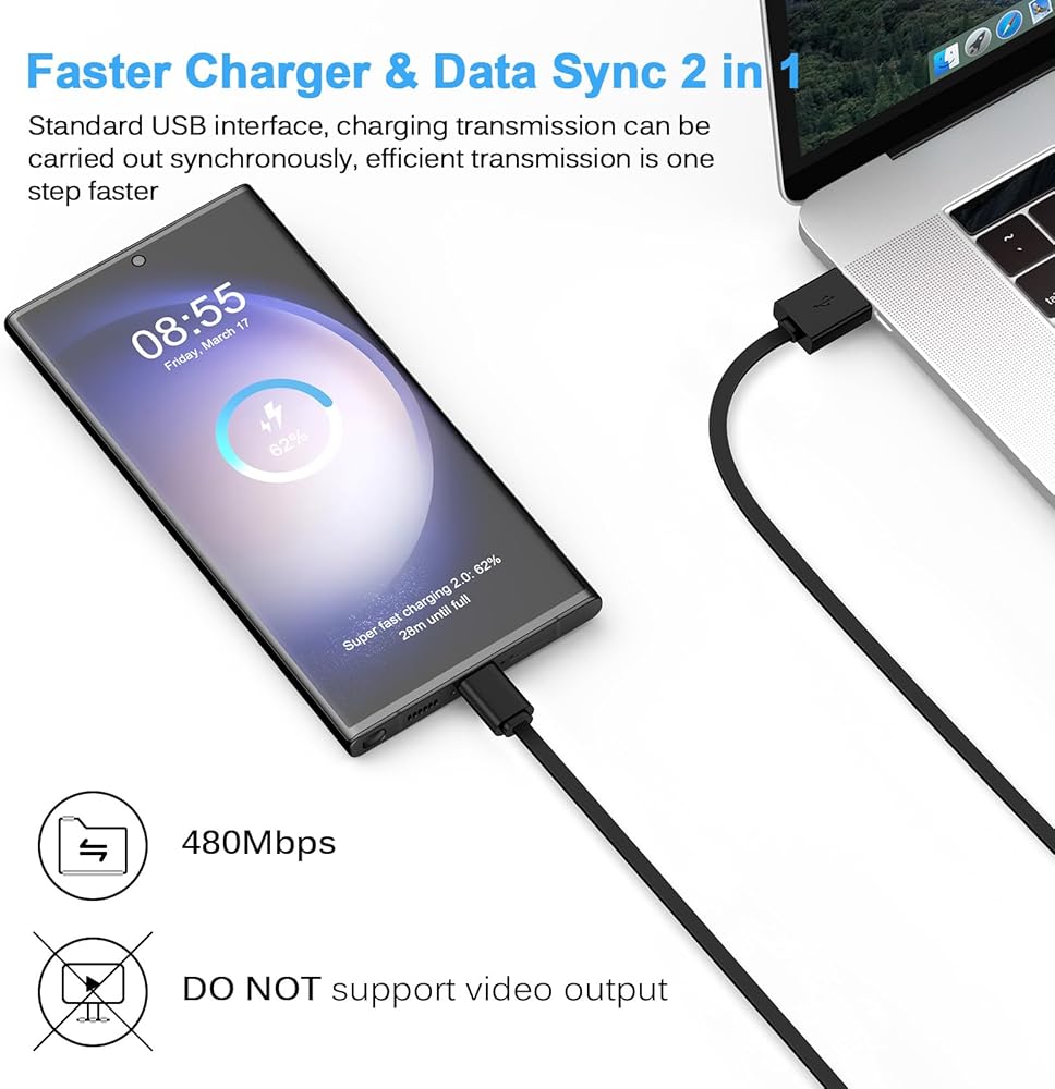 Samsung Fast Charging Cable USB Type C for Samsung Galaxy S25+/A16 5G/A25/A35/A54/A15/S24 ULTRA/S23 FE/S22 ، iPhone 16 Pro Max/15 Plus ، 3ft carrad cord usb to USB c android phone شاحن