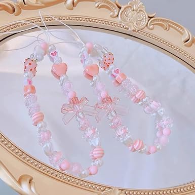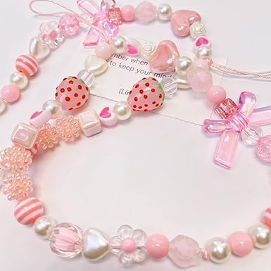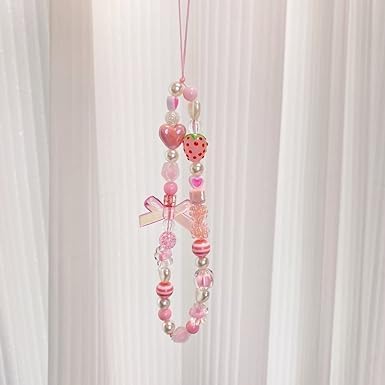 حزام سحر هاتف الفراولة ، وردي لطيف ، سحر الهاتف الخليوي ، جمالية حب سلسلة الهاتف ،