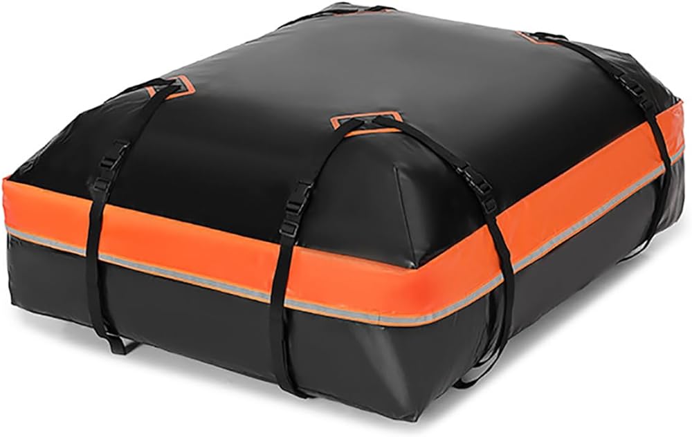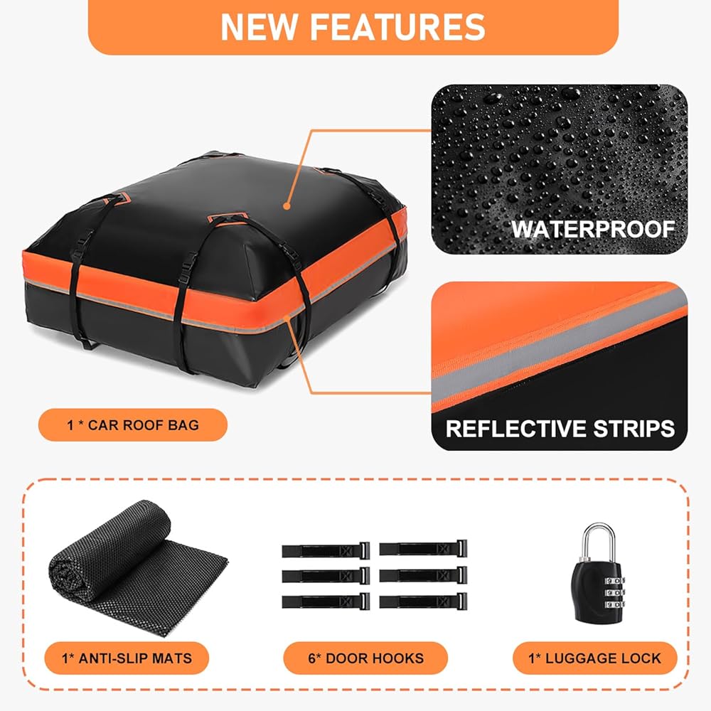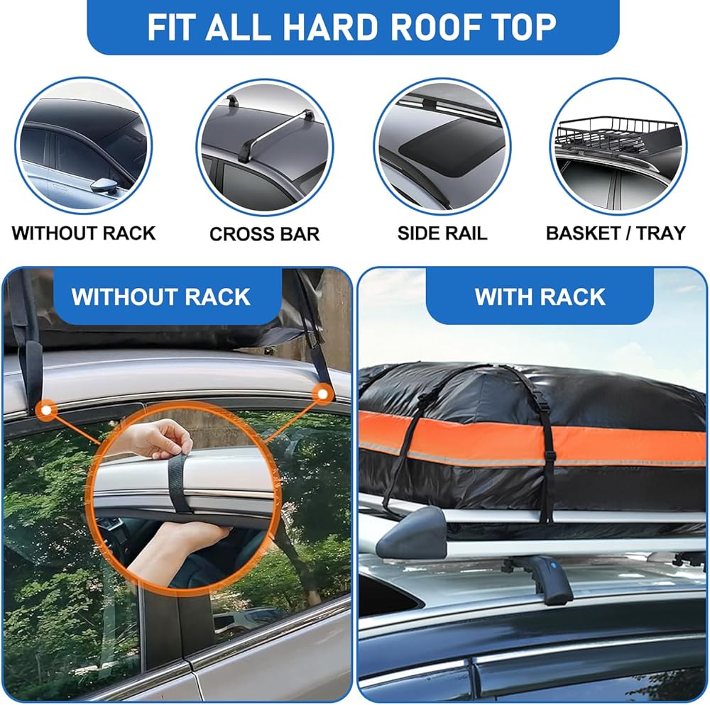 حقيبة سقف السيارة ، حقيبة حاملة شحن على سطح السيارة مقاومة للماء 15 قدم مكعب لجميع السيارات مع/بدون رف ، تشمل حصيرة مضادة للانزلاق ، وأشرطة مقواة ، وسطح أبواب 6 ، وقفل الأمتعة (15 قدمًا مكعبًا)