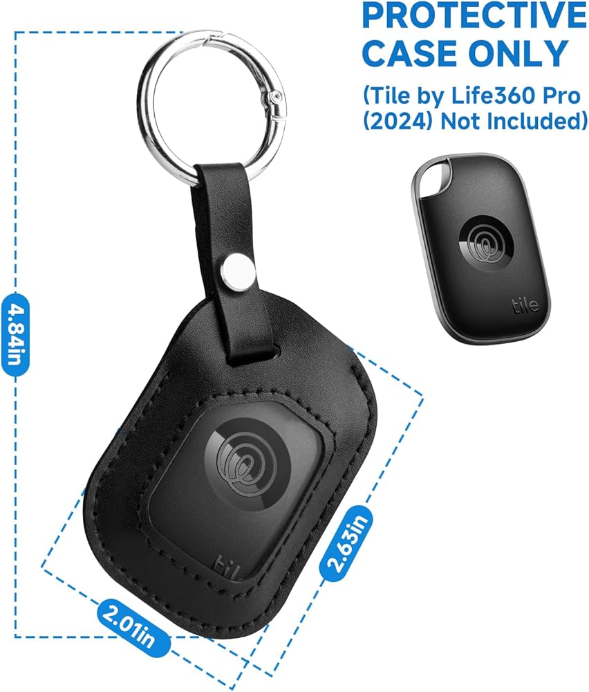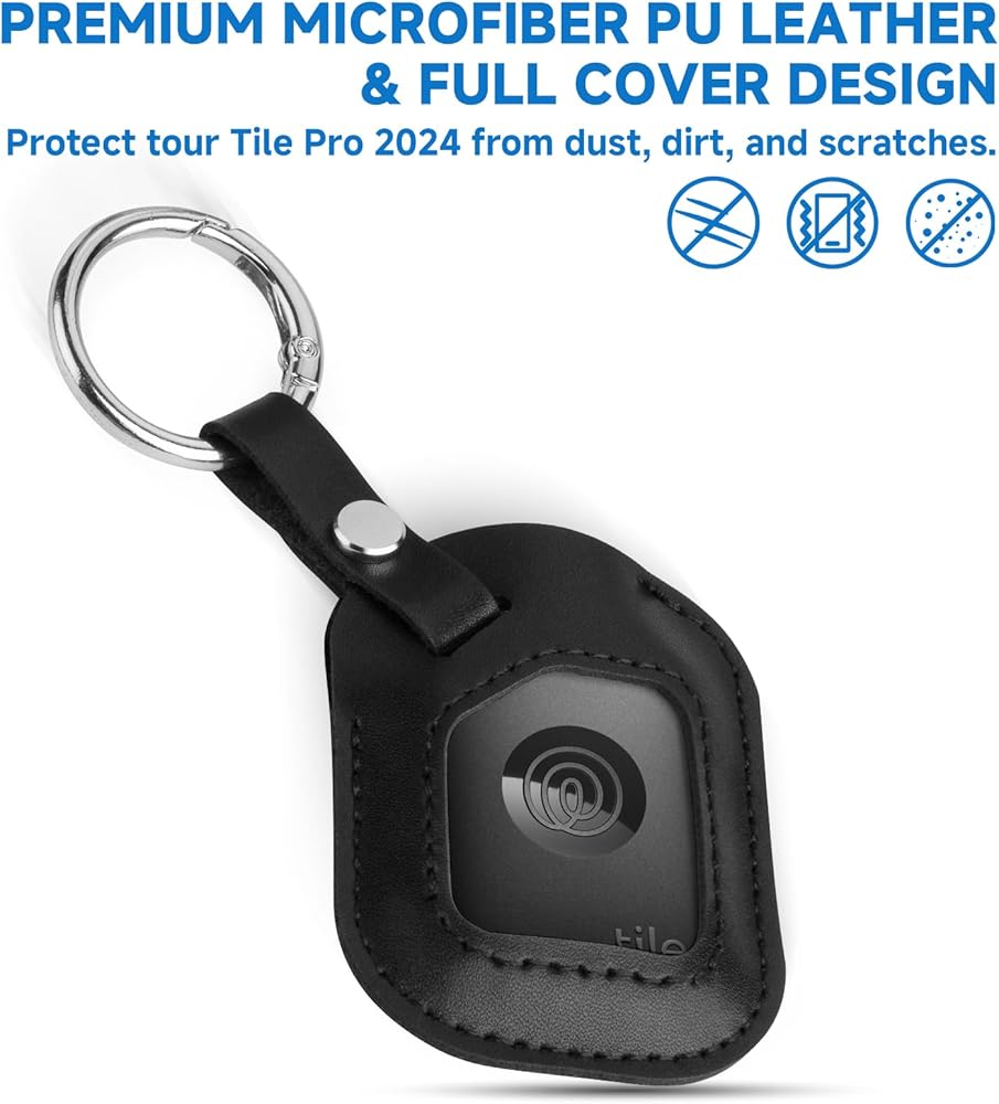 للحصول على Tile By Life360 Pro (2024) ، حالة حماية حامل جلود من الألياف الدقيقة مع مقطع حلقة رئيسي للبلاط re-61011-AP Pro 2024 Bluetooth Android IOS Tracker ، 1 حزمة (حالة فقط)
