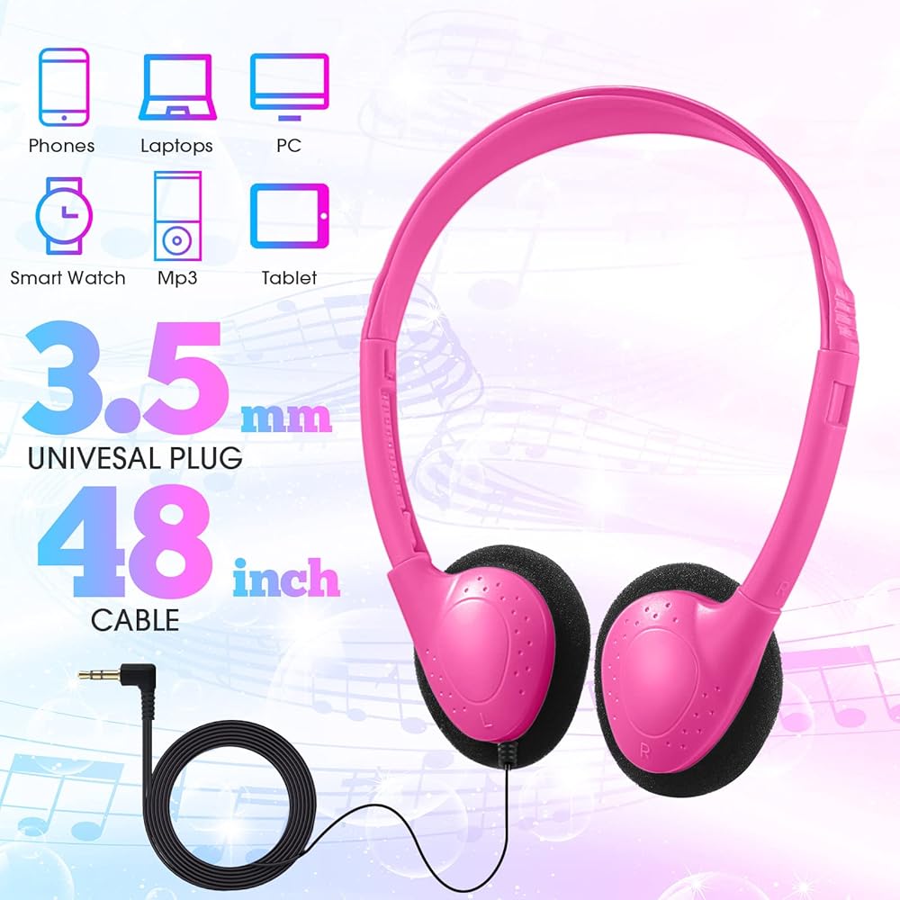 With great sound quality and a standard 3.5 mm jack, these headsets for kids are compatible with smartphones, desktops, tablets, laptops, MP3, fitness and audio devices.