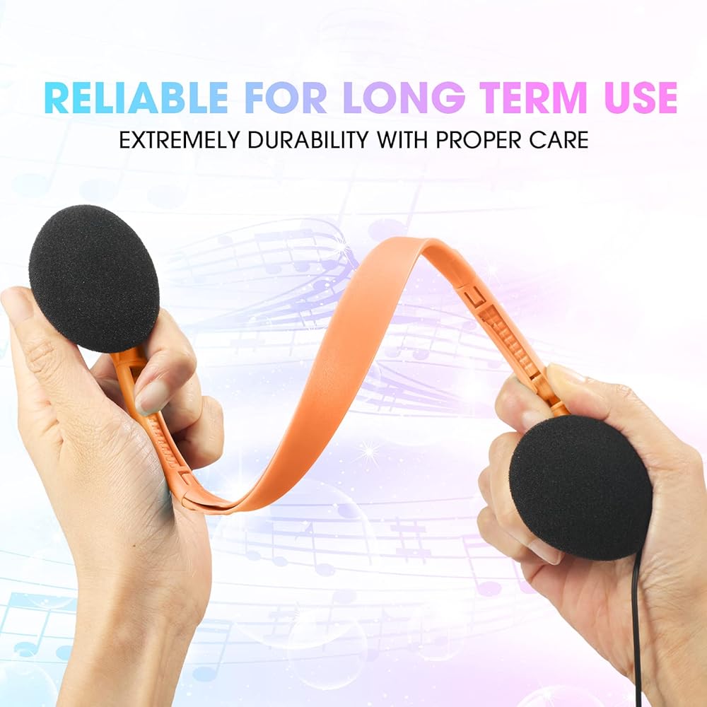 These over ear student head phones are designed with an adjustable headband that is flexible and bendable, not easy to break, suitable for children and adults.