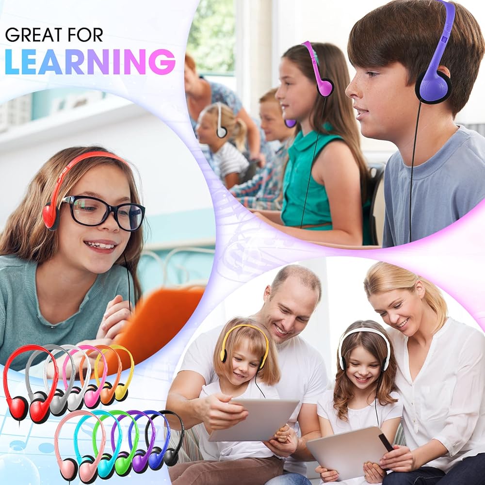 These on ear student headsets are designed with 360-degree rotatable ear cups to easily fit your face, and you can stack to store them when not in use without taking up space.