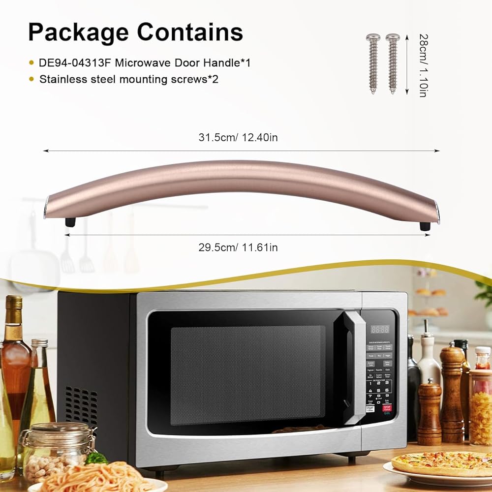 The Product Includes: 1 DE94-04313F Samsung Microwave door handle and 2 matching screws