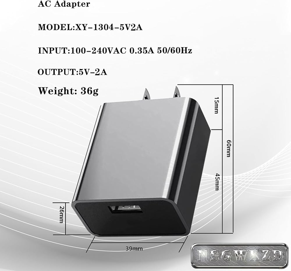 - Output: 5V 1A 5W, 5V 1.5A 7.5W, 5V 1.8A 9W, 5V 2A 10W max
