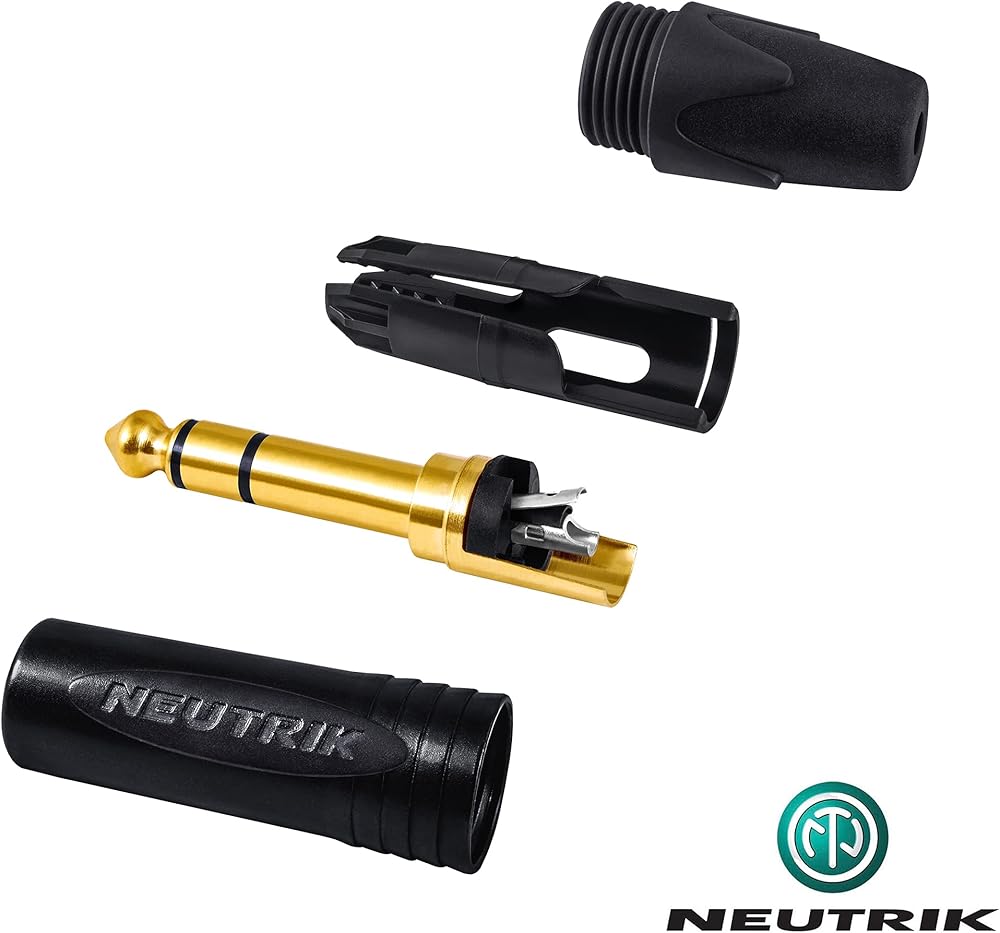 The brand of connector we used for this custom cable assembly: Neutrik NP3X-B is the latest & the highest-end ¼ inch Gold-plated Straight TRS offering by Neutrik AG- Liechtenstein, the world's leading brand for professional audio connectors. Sports a slimmer shell & a precisely machined one-piece tip.