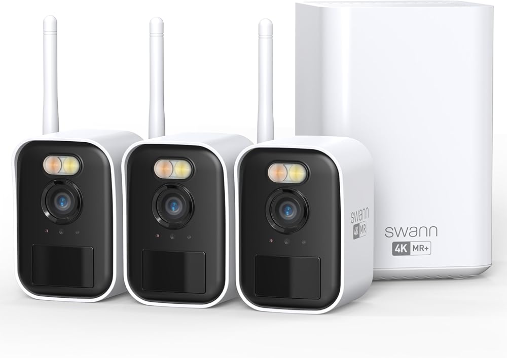 نظام كاميرا أمان لاسلكية Swann Maxranger MINI 4K، واي فاي طويل المدى يصل إلى 1000 قدم، للمنزل/الخارج، طقم NVR 8CH 3-Cam، تسجيل 24/7، رؤية ليلية ملونة، اكتشاف حقيقي، بدون رسوم شهرية، MRMINISD3