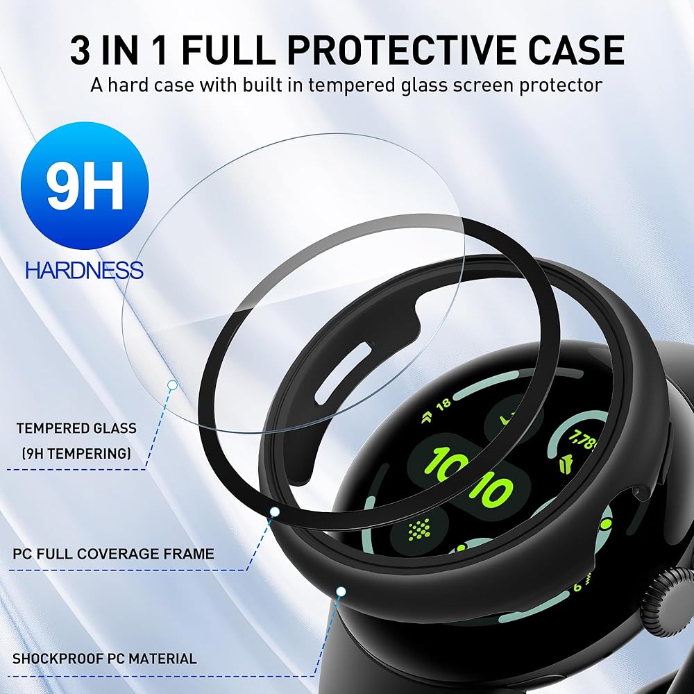 مادة المنتج: متينة متينة للكمبيوتر الشخصي المصد وحامي شاشة زجاجي مضمّن 9H. تم تصميم العلبة مع قطع دقيق لسهولة الوصول إلى جميع عناصر التحكم والأزرار وأجهزة الاستشعار وجميع وظائف الساعة.