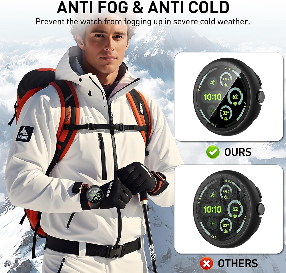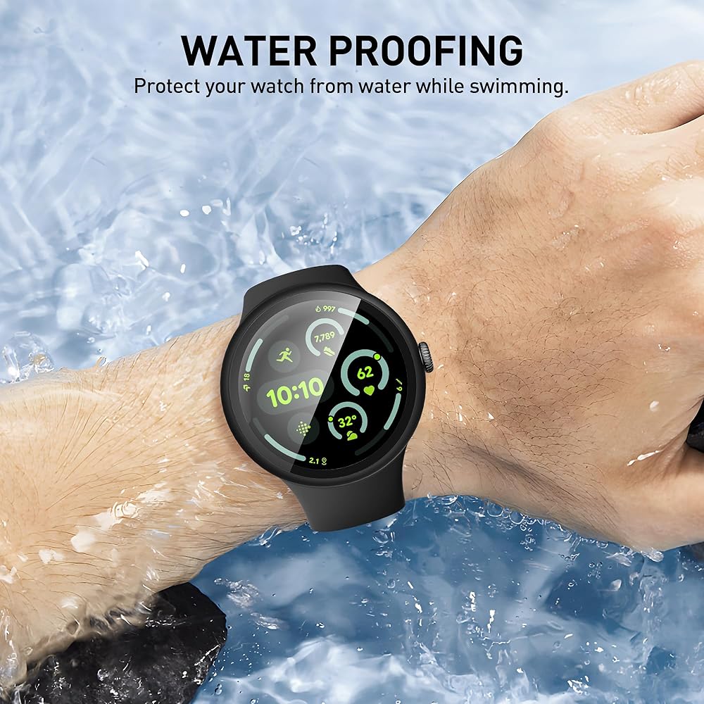 يرجى ملاحظة: حالة الساعة هذه ليست مقاومة للماء. تغطي العلبة بشكل شامل كل من الشاشة والحواف ، مما يمنع ساعتك من الغبار وبصمات الأصابع والخدوش. في حالة الماء (السباحة ، الرياضة ، إلخ) ، يمكن استخدامه بشكل طبيعي فقط عن طريق مسح الجفاف باستخدام قطعة قماش.