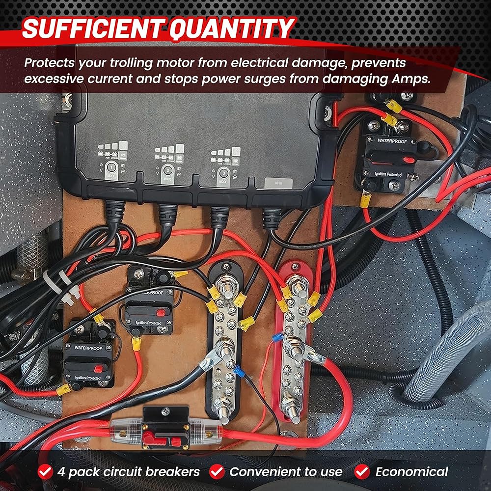 المواصفات: الجهد المباشر 12V-48V ، 4 × 30 أمبير قاطع دائرة السيارات ث/6 مقياس 1/4 "كبل سلك البطارية المحطة الطرفية ؛ حماية الاشتعال: S.A.E. J1625 ، J1171 ، UL1500