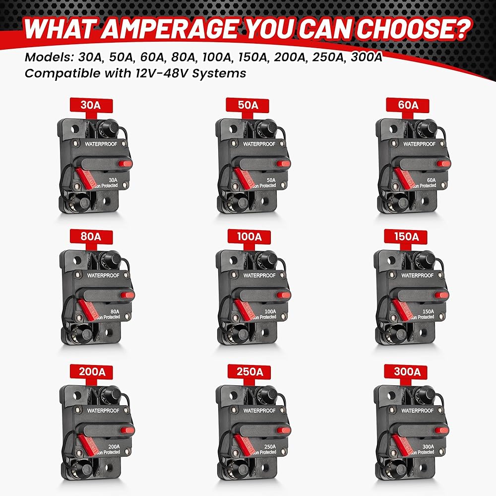 سهل التشغيل: 30 أمبير دائرة الكسارة DC 12V-48V المستخدمة بدلاً من حامل الصمامات المضمّن ؛ يظهر رافعة إعادة تعيين مرئية حالة مفتوحة ، ويمكن أيضًا استخدام إعادة ضبط زر الضغط الفريد كمفتاح قتل ؛ زر على قاطع الدائرة يمكن أن يكون بمثابة فصل رئيسي للدوائر ؛ يمكن تركيب قاطع الدائرة على لوحة أو جدار حماية