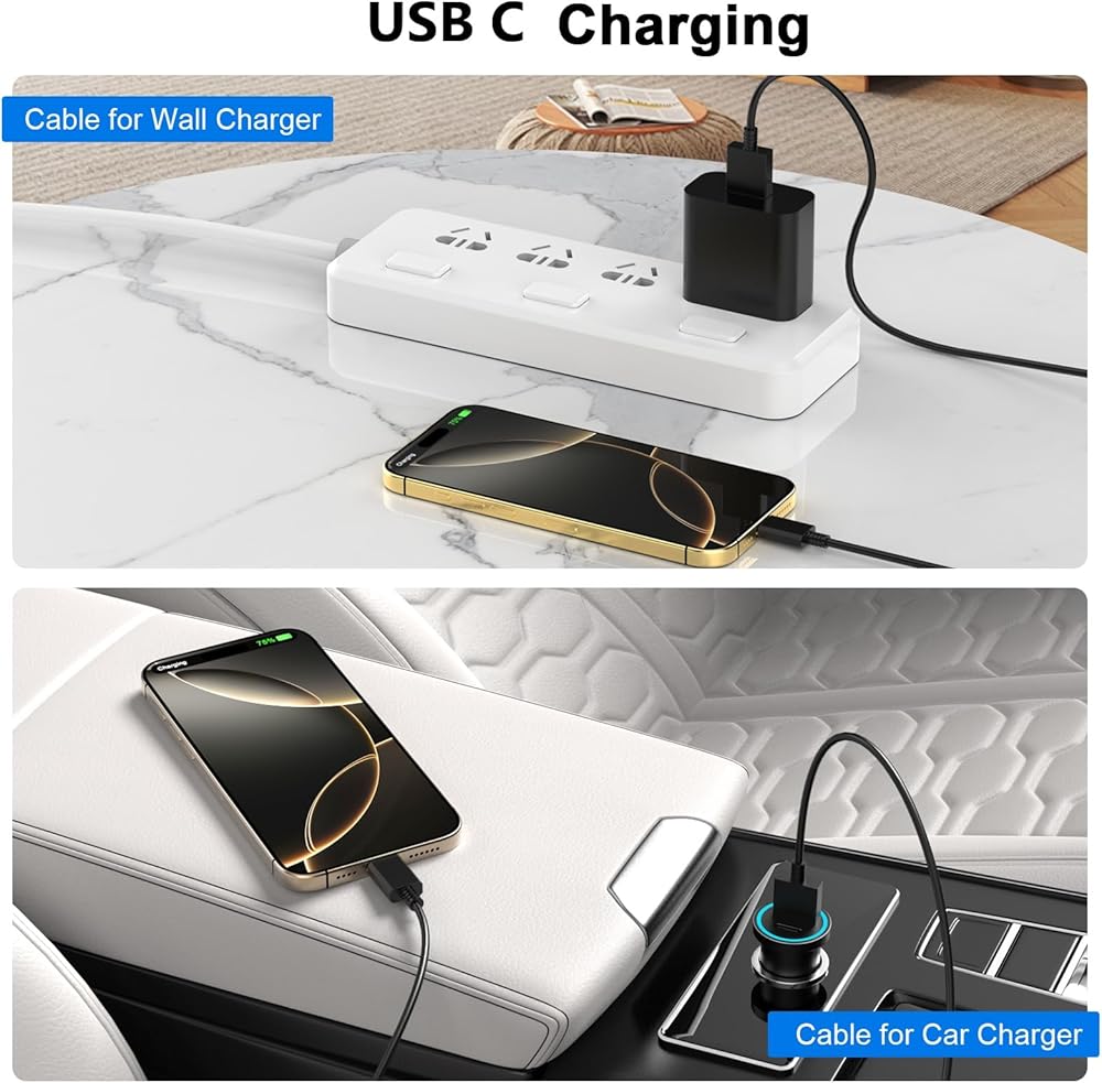 • 【Widely Compatibility】This car carplay cable connects and perfect compatible with your iPhone 16/16 Plus/16 Pro/16 Pro Max, iPhone 15/15 Plus/15 Pro/15 Pro Max,for iPad Pro 13-inch (2024), 12.9-inch, 11-inch,for iPad Air 6th/5th/4th Gen, for iPad Mini 6th Gen,TV Remote (3rd Generation), and the car carplay cord also for Galaxy for pixel, USB C Phones and more.