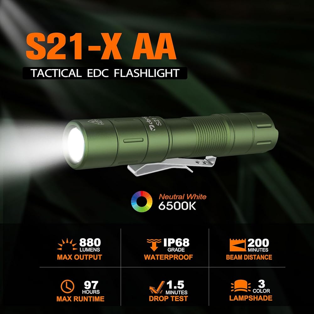 مصباح يدوي مصباح صغير قابل لإعادة الشحن S21x مع مقطع ، 880 Lumen AA High Pocket Flashlight EDC ، ومغناطيسي مصباح صغير مشرق ، ومضمار فلاش 5 وموزع ، والتخييم ، والأسرة