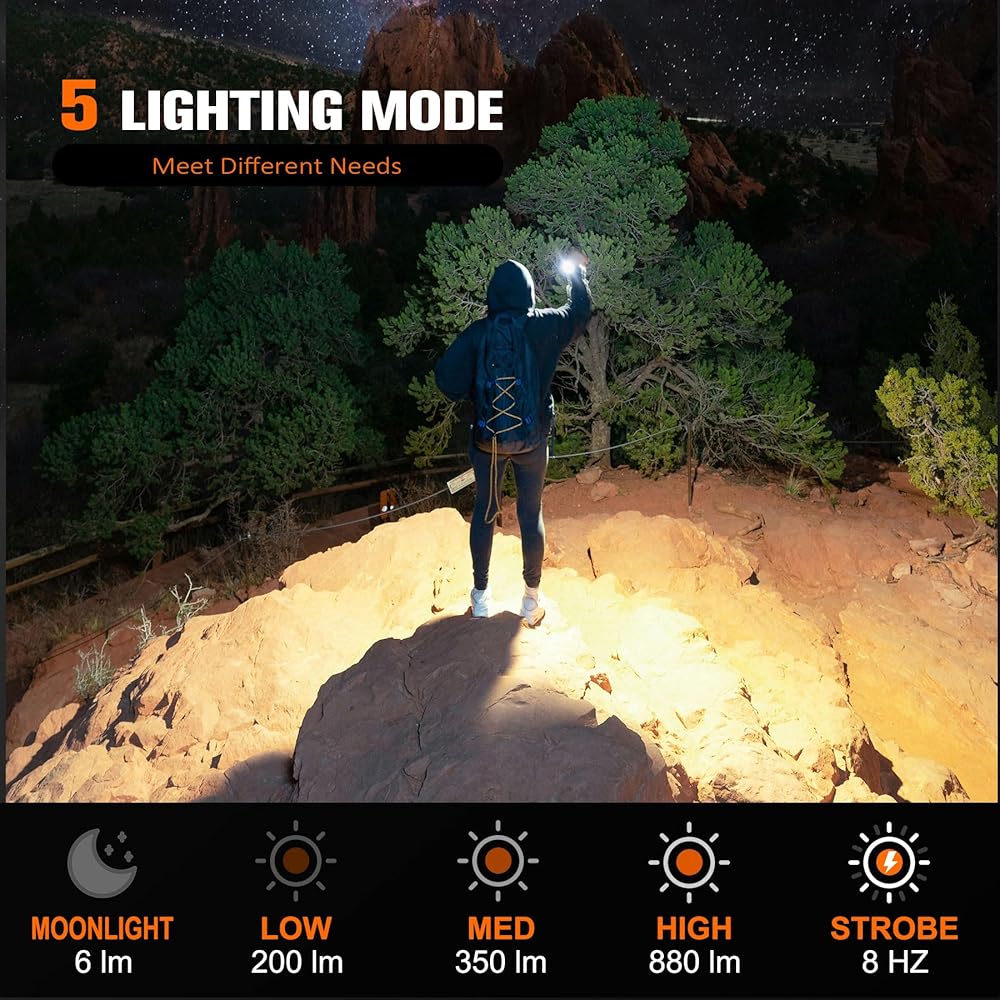 • إضاءة Superbright: تم تجهيز مصباح يدوي Ycbright S21x بمصباح LED عالي الأداء مع إخراج ما يصل إلى 880 لومين و 5 أوضاع: ضوء القمر/متوسط/عالي/فلاش (مع الذاكرة)