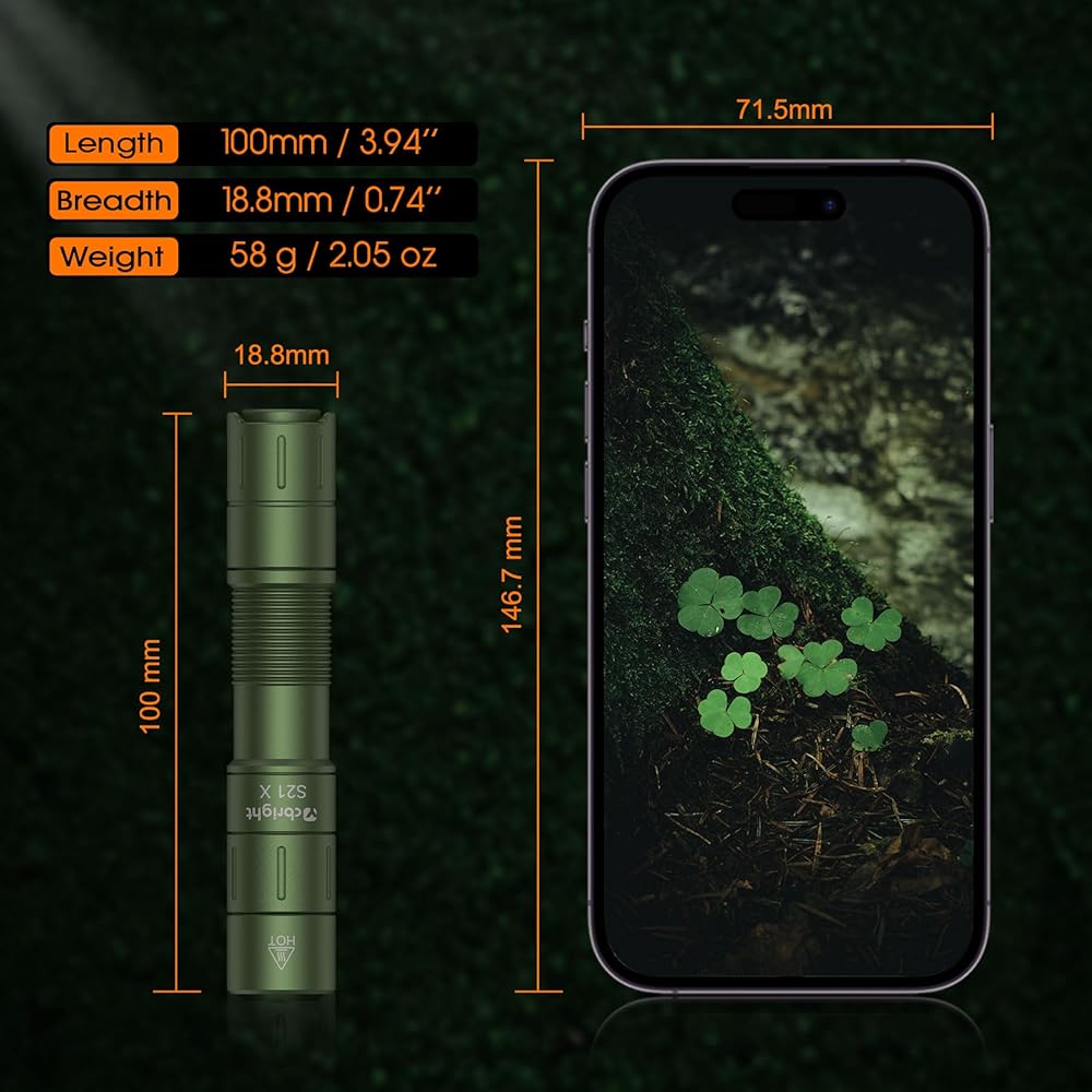 • ضوء محمول متعدد الأغراض: يقيس S21x 2.94*0.55 بوصة ويزن 58 جرامًا فقط ، لا يشغل أي مساحة تقريبًا في جيبك/حقيبة الظهر. ، هو الخيار المثالي للعائلة/عيد الأب