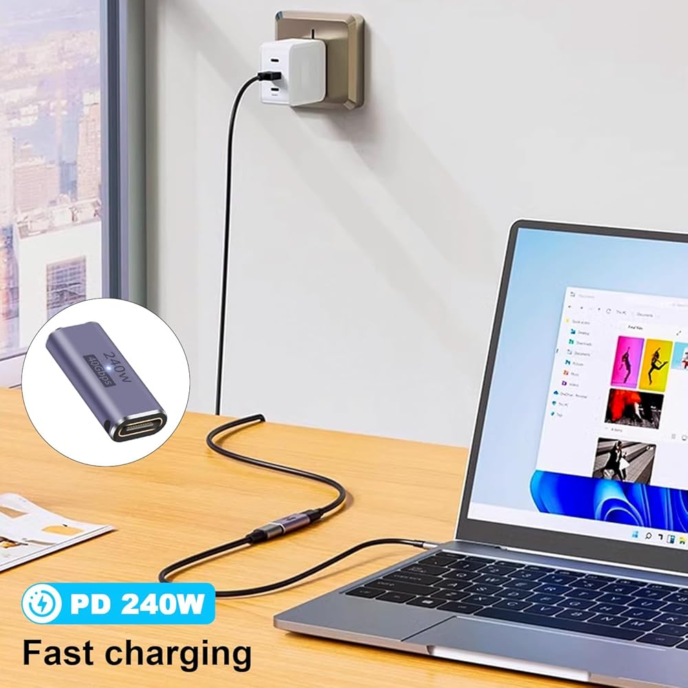 • 【PD 240W】 يدعم محول USB C إلى محول الإناث ما يصل إلى 240 واط للشحن السريع لأجهزتك. مع إخراج 48V/5A كحد أقصى ، إنه مثالي لتشغيل أجهزة الكمبيوتر المحمولة للألعاب وأجهزة MacBooks وأجهزة USB-C الأخرى دون القلق بشأن نفاد الطاقة.