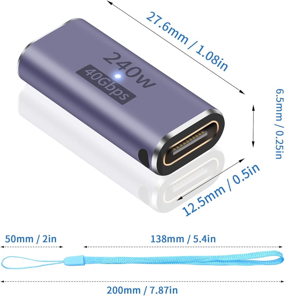 • 【محول USB C أنثى إلى أنثى】 هذا المقرن 240W USB C يتميز بسكن ألمنيوم متين وتصميم ضوء LED فريد من خلال عرض حالة الشحن السهل. يسمح تصميم الحبل بتعلق مريح على الأكياس وسلاسل المفاتيح ، وهو مثالي للسفر والاستخدام المنزلي.