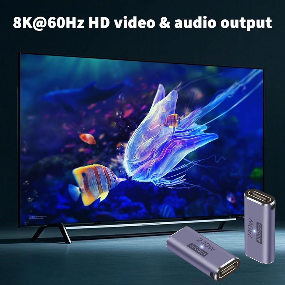 • 【Crystal Clear 8k Video】 استمتع بجودة صوت ومرئية استثنائية مع محول USB C إلى USB C إلى 8K@60Hz نقل الصوت والفيديو.
