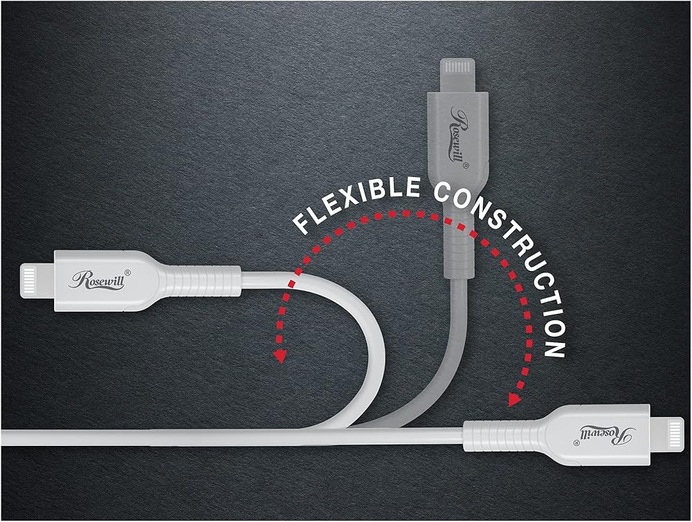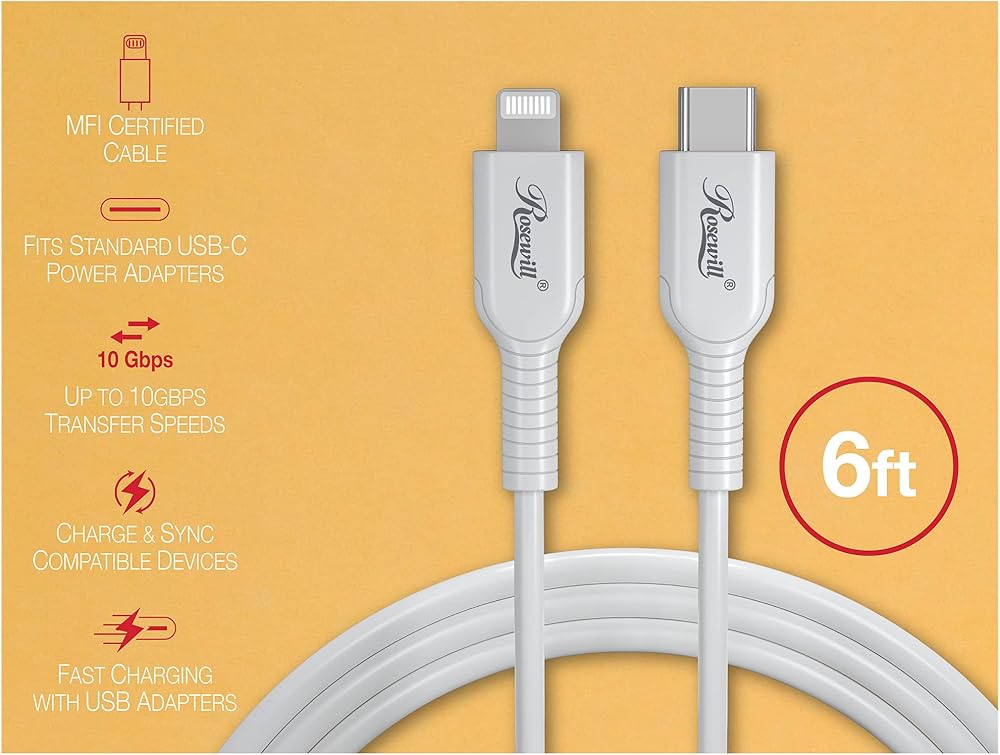 ROSEWILL USB-C إلى كبل البرق ، كابل الشحن المصدر ومزامنة MFI لـ Apple iPhone و iPad Pro و AirPods Case | سريع الشحن ونقل البيانات ، بنيت بشكل قاطع | أبيض ، 6 أقدام