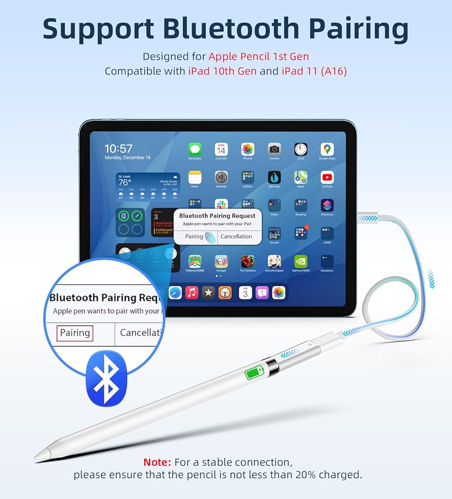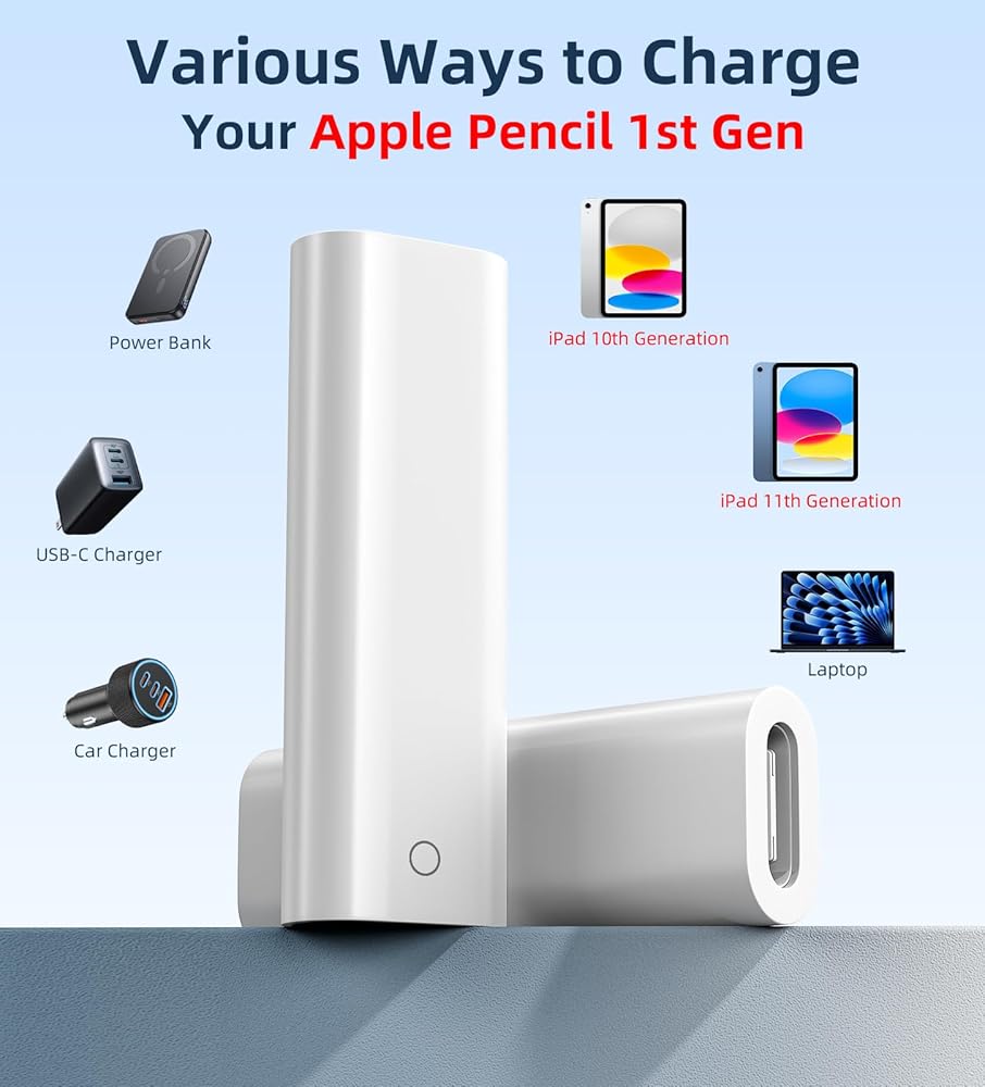 محول شاحن قلم رصاص TiMOVO USB C لقلم Apple الجيل الأول، موصل شاحن الإضاءة إلى USB C، محول شحن لقلم Apple يدعم اقتران البلوتوث مع iPad 10th/11th Gen A16 2025، أبيض