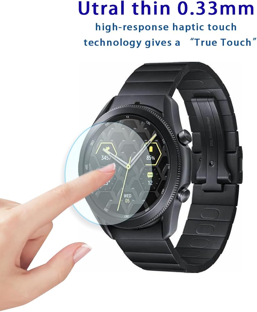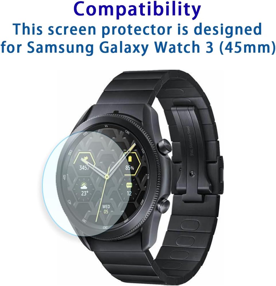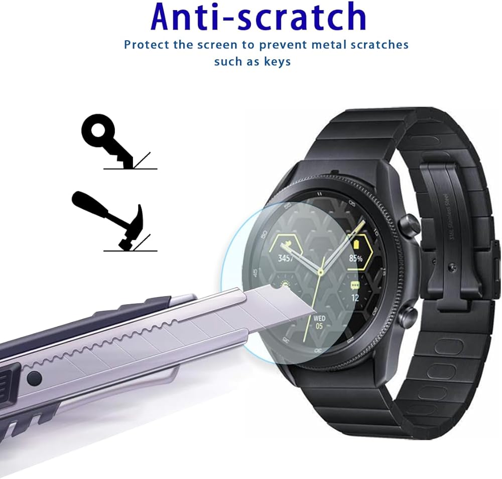 واقي الشاشة لـ Samsung Galaxy Watch 3 (45 مم) / Galaxy Watch 4 Classic (46 مم) فيلم زجاجي مقسى ، صلابة 9H ، مضاد للخلع ، تعريف عالي ، خالي من الفقاعات (2 PCS)