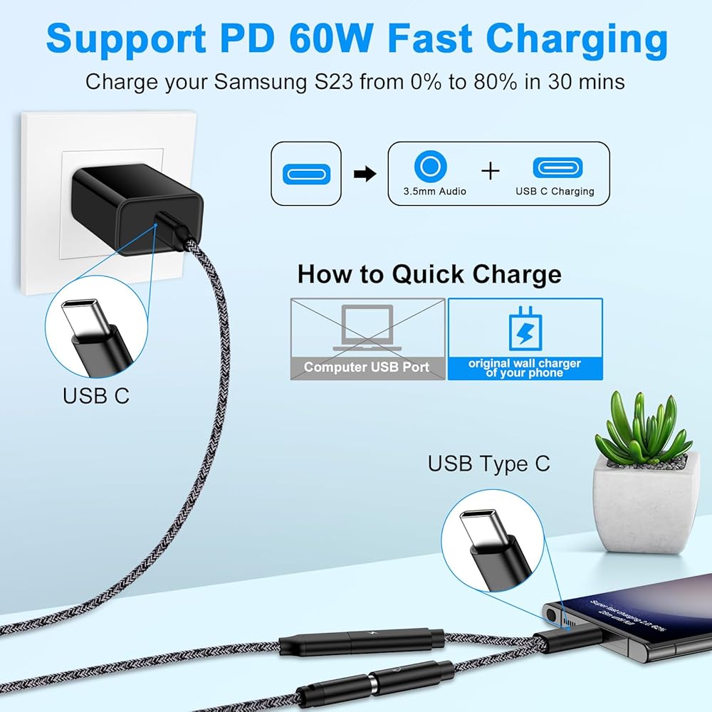 2-in-1 USB C to 3.5mm Headphone Adapter and 60W Super Fast Charger Adapter