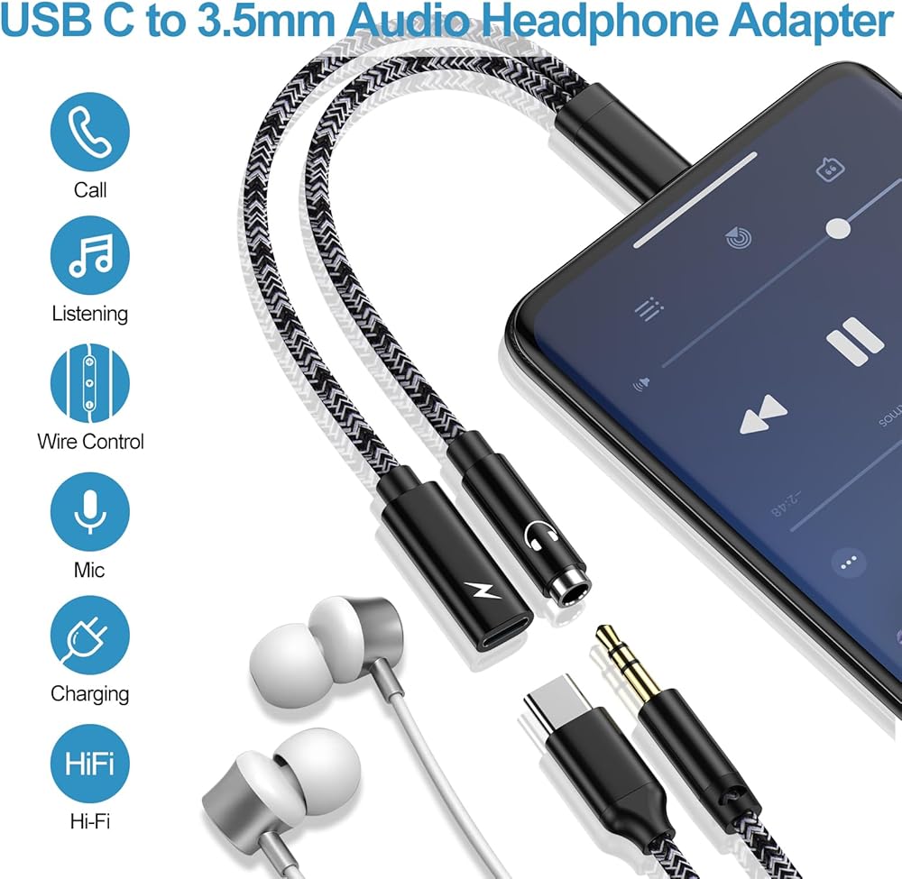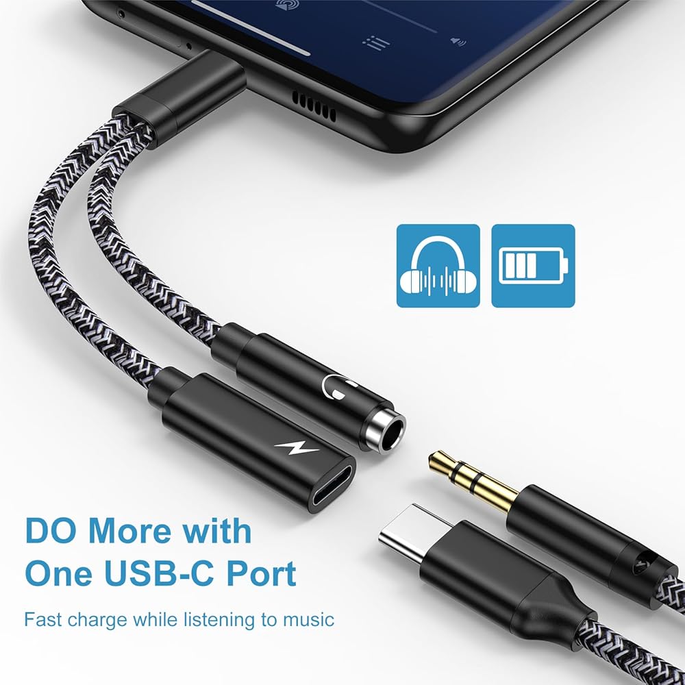 USB-C Android Charger Cord and Audio Adapter