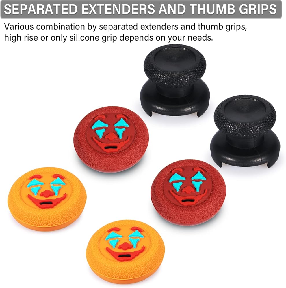 FPS Thumbstick Extender & Texture Rubber Silicone Grip Cover 4 مجموعات لسلسلة Xbox Series X/S & Xbox One (Joker Red+Orange)