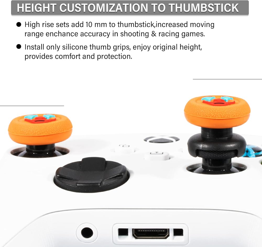 • Different Height Options - Install extender & grips sets adds 10 mm height to the stick, enhances precision in shooting, racing games. Install only silicone thumb grips, enjoy original height and ideal comfort and protection;