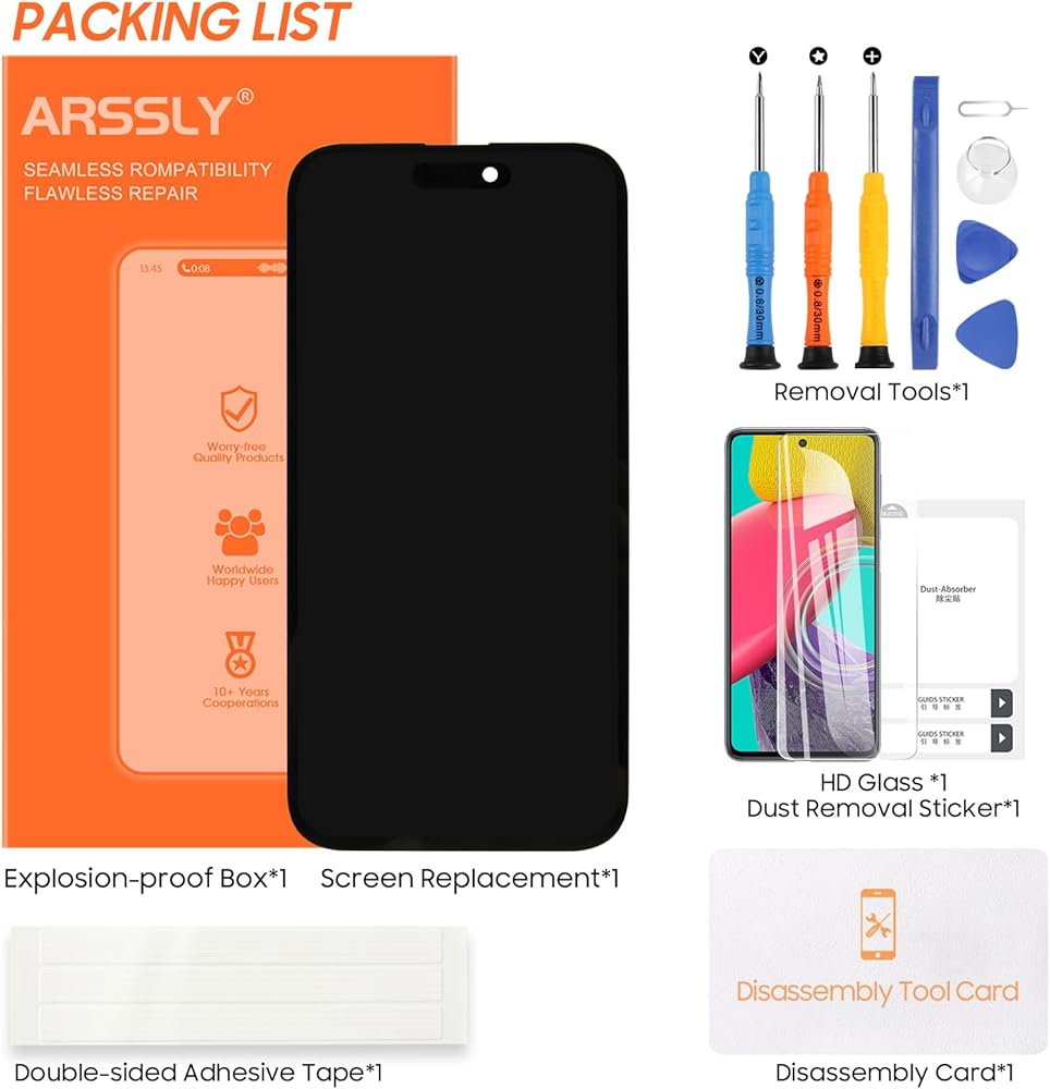 Package Include: 1 * LCD screen replacement for iPhone 15 Plus + 1 * Repair Kit