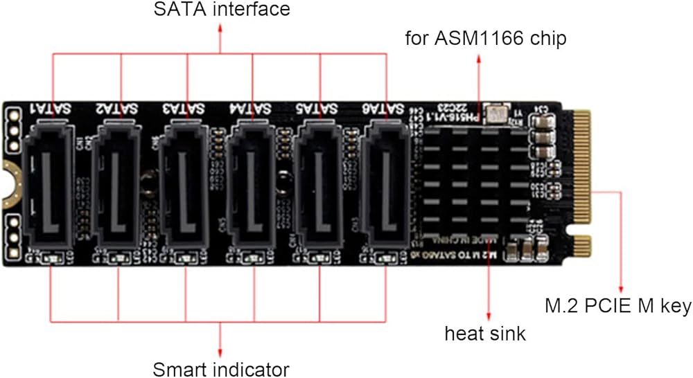 - M.2 إلى SATA3.0 بطاقة محول: M.2 إلى SATA3.0 بطاقة التوسع UPLINK PCIE3.0 X2 16GBPS ، SATA3.0 6GBPS × 5.