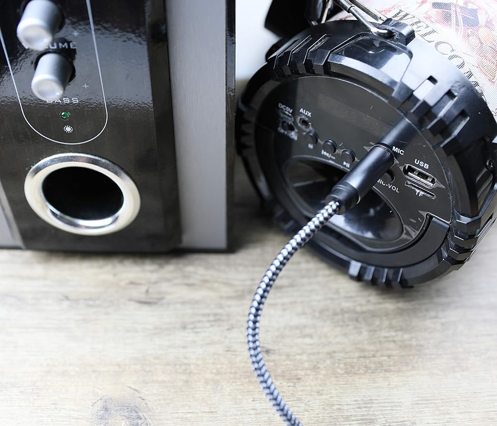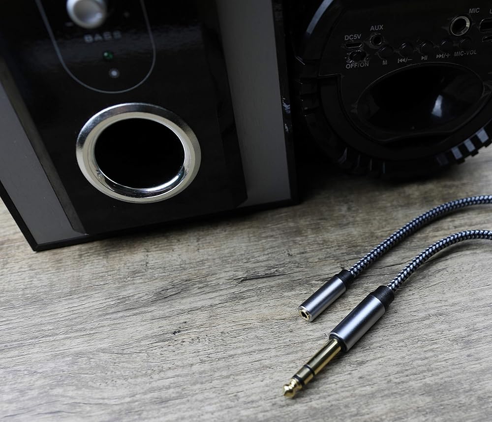 Maximum Durability: 6.35 to 3.5 adapter cable Braided with unique crystal-nylon materials to ensure minimize any damage from dropping, pulling, bending, twisting, even your pet's chewing.