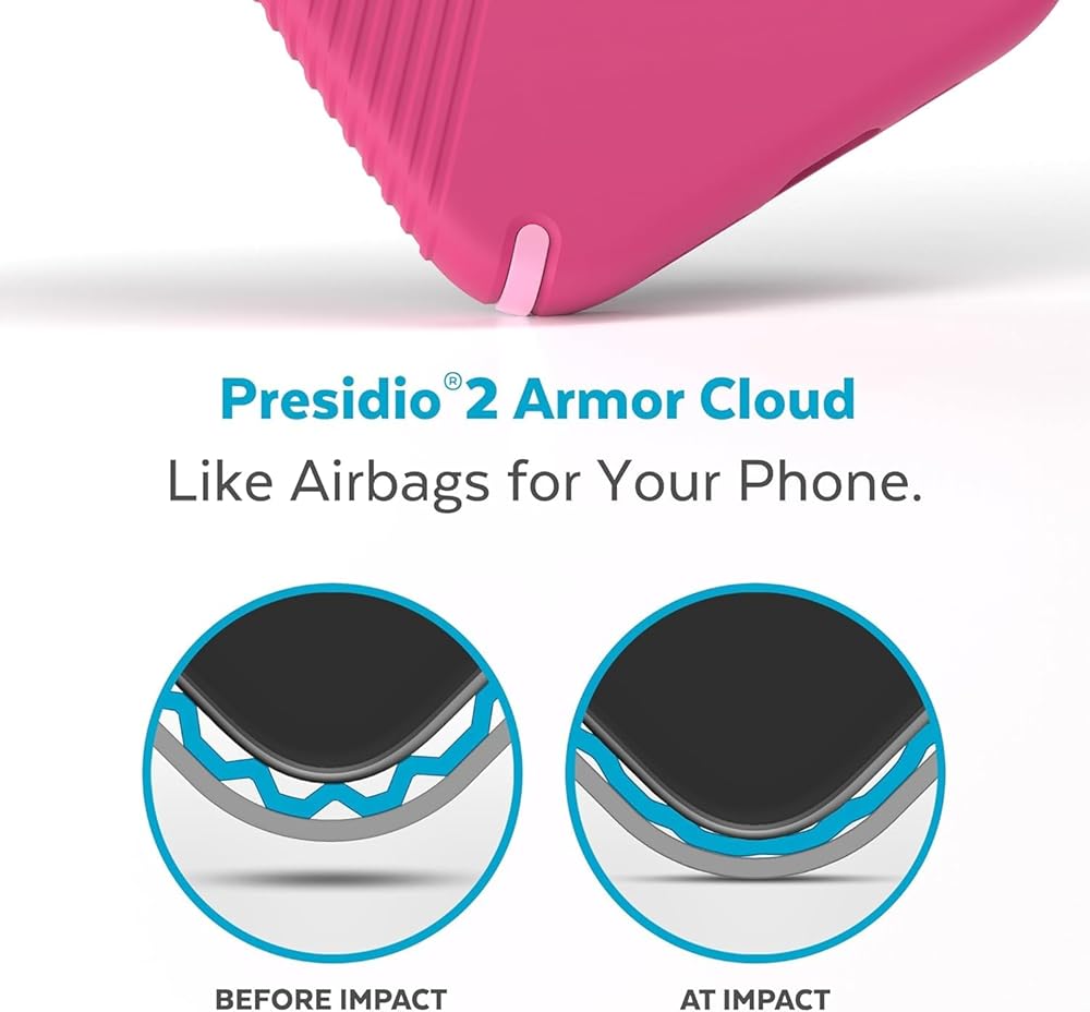 PRESIDIO2 GRIP is a super protective and pocket-friendly case that has a soft-touch finish for ultimate comfort plus newly innovative no-slip inverted grips. With great longevity, durability and a strong grip, this case provides more confidence when texting, talking, or taking photos. Now 20% slimmer, this durable case is designed with precise magnets built