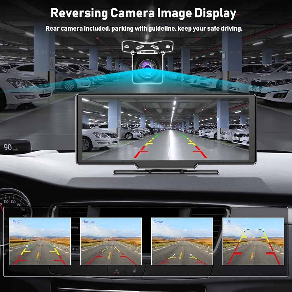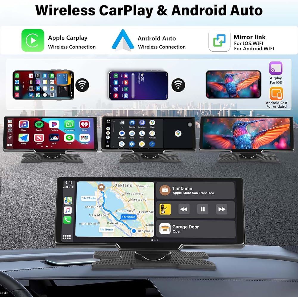 • CarPlay اللاسلكي المحمول و Android Auto: ستيريو سيارة Carplay المحمولة 9.3 بوصة مع 2.5K Dash Cam ، HD View Camera. يمكن لشاشة تشغيل السيارات المحمولة اللاسلكية أن تتصل بتوصيلات Apple Carplay و Android Auto عبر Bluetooth/WiFi والوصول إلى جهات اتصال هاتفك ، وتنقل GPS ، والفيديو ، والموسيقى ، ورسائل البريد الإلكتروني أثناء التركيز على القيادة