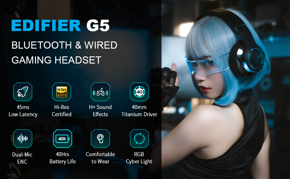 Fast Connectivity-تستخدم سماعة G5BT Wireless Gaming Meadset من رقاقة لعبة الهاتف المحمول ذات الكشف عن العمل المنخفضة من Pixart ، مما يوفر تجربة تشبه السلكية مع زمن انتقال منخفض بشكل مثير للإعجاب من 45 مللي ثانية للعاملين.