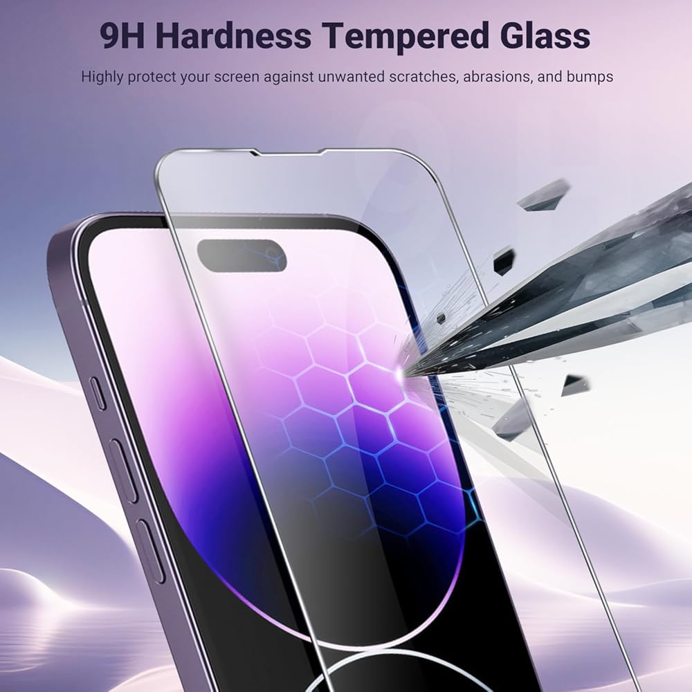 4 حزمة شاشة شاشة زجاجية مقسّمة لـ iPhone 14 Pro Max (6.7 بوصة) فيلم زجاجي مقسى ، Ultra HD ، مقاوم للخدش ، وعب العلبة
