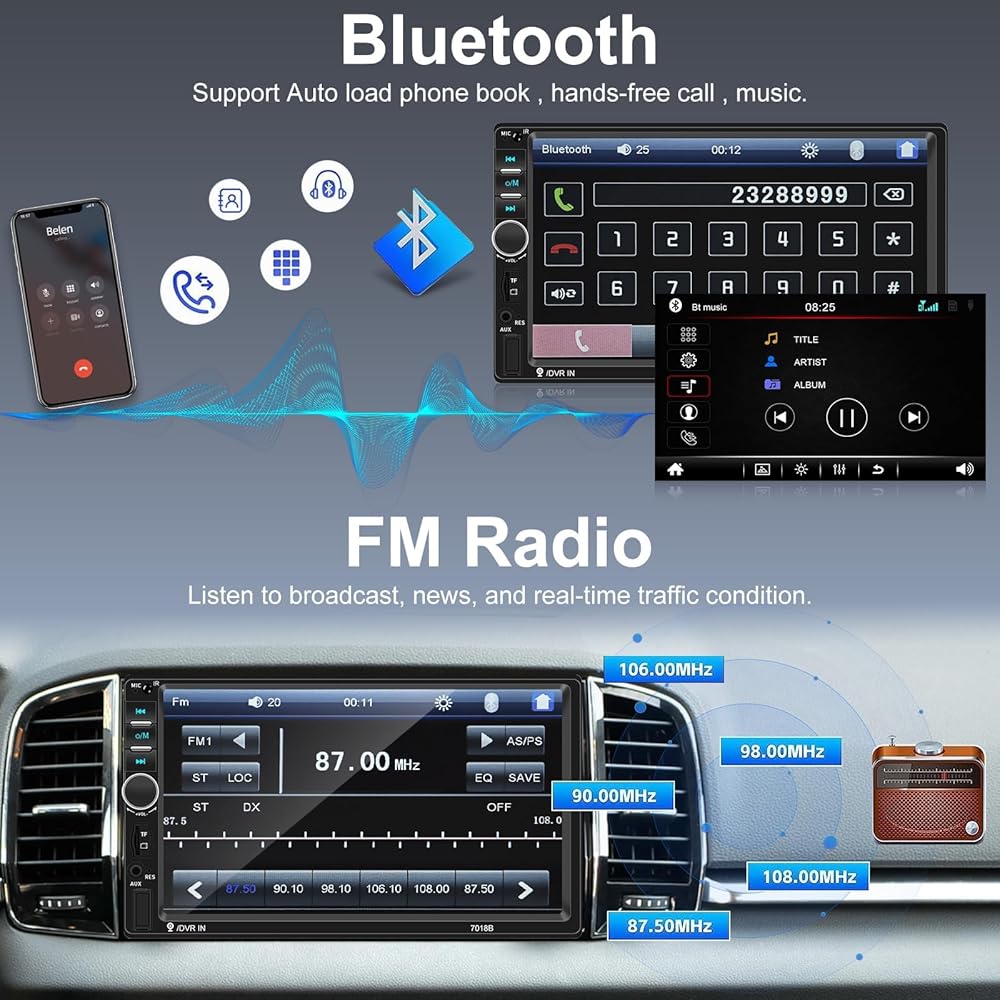 【7 بوصة شاشة تعمل باللمس HD】 الراديو الذي تعمل باللمس هو القياسي 2 DIN Universal Size (178*100mm) ، مصمم كشاشة تعمل باللمس بحجم 7 بوصات ، يرجى التحقق من حجم وحدة التحكم في مركز السيارات قبل الطلب