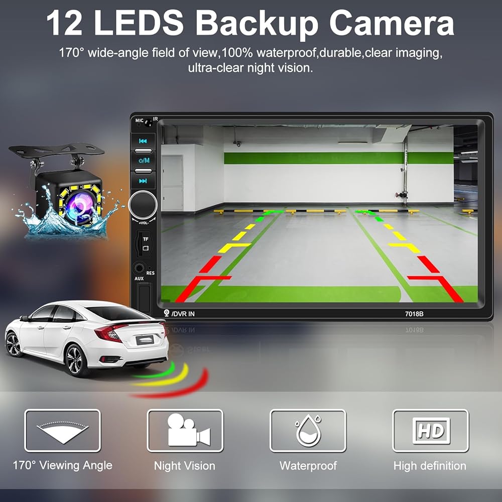 【مع 12 كاميرا احتياطية LED】 عدسة عرض واسعة 170 درجة ، رؤية ليلية الأشعة تحت الحمراء ، كاميرا IP68 مقاومة للماء ، ستعرض وحدة رأس الشاشة اللمس المرئية العكسية تلقائيًا عند الانعكاس ، مثالية لمجموعة متنوعة من المركبات: السيارة ، الشاحنة ، إلخ.