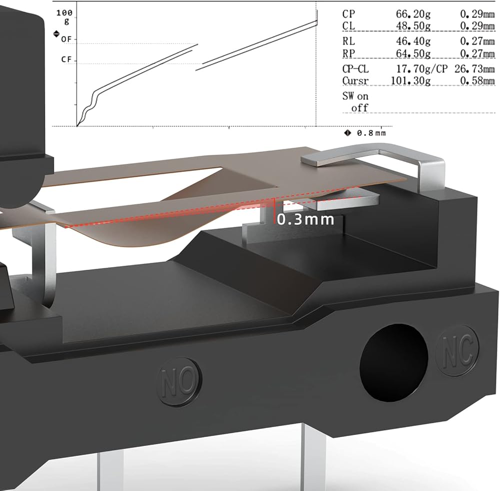 - 【Parametric】 إطلاق القوة 25GF (MIN) ، قوة التشغيل 65 ± 10GF ، خط سير الوصل 0.3 ± 0.2 مم ، والطرق لمس 25 ٪. ليس Silent Micro Switch.no انقر نقرًا مزدوجًا.