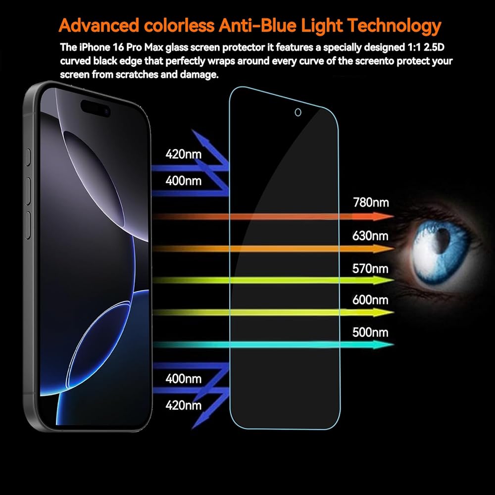 • 【شاشة الضوء المضادة لـ iPhone 16 Pro】 يمكن لزجاجنا المقسى لـ iPhone 16 Pro منع الضوء الأزرق الضار من الشاشات الرقمية لحماية عينيك من أجل نوم أفضل.