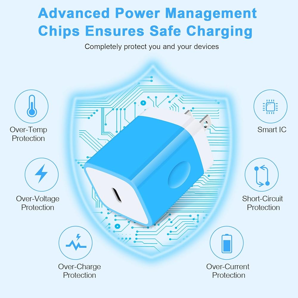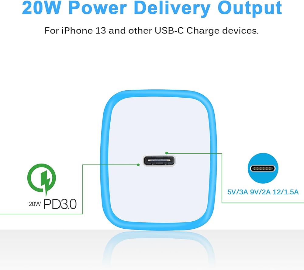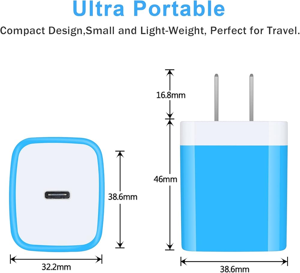 2-Pack 20W PD 3.0 USB C Block Wall Plug (Blue)