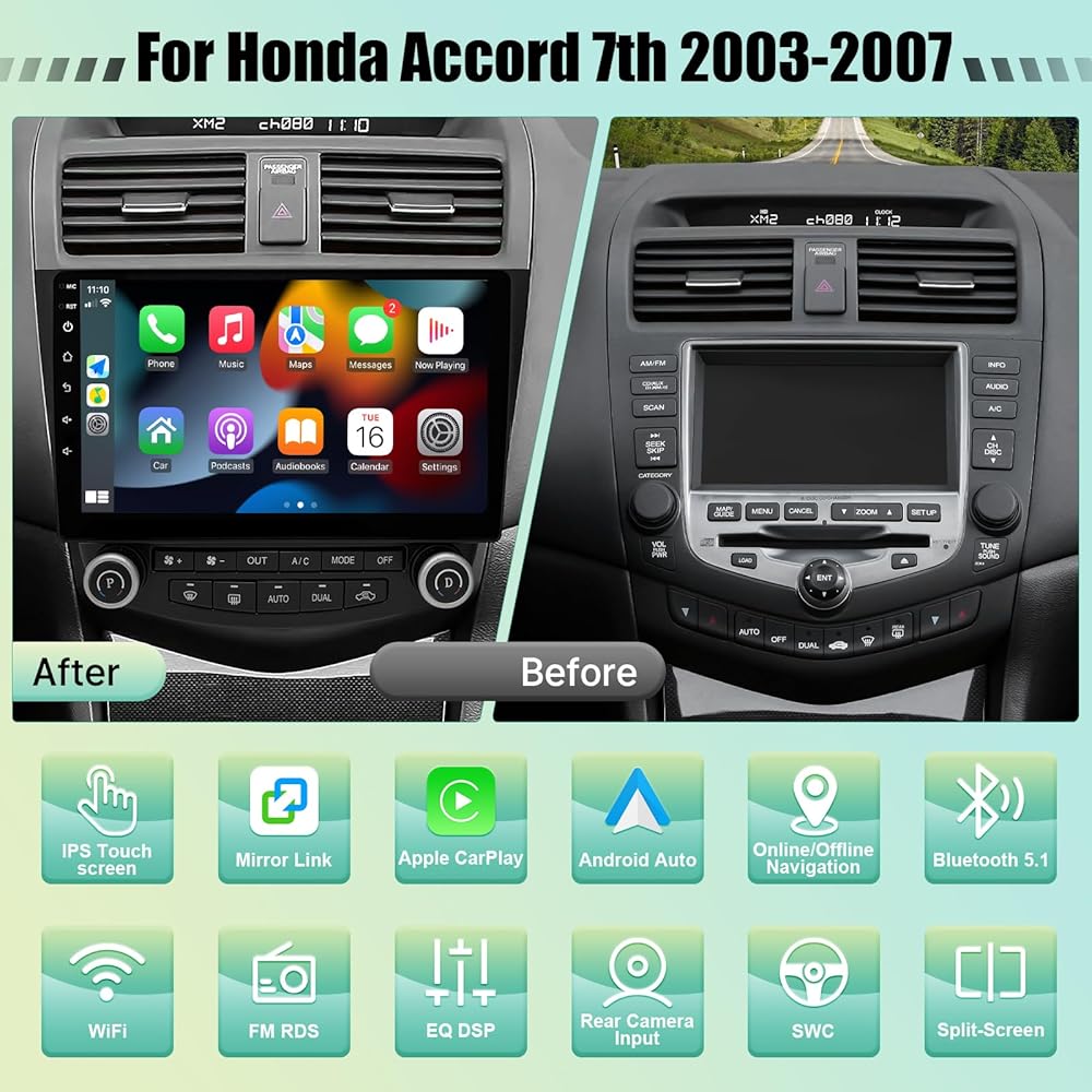 Carplay Wireless Carplay & Android Auto - Car Stereo 2003 Honda Accord مع وظيفة التحكم في صوت Apple Carplay/Android لعام 2005 Honda Accord Apple Play Multimedia Player. يمكن للمستخدمين تحقيق التحكم في صوت Apple Carplay للوصول إلى نظام السيارات في إجراء مكالمة هاتفية ، والتنقل في GPS ، وتشغيل الفيديو والموسيقى ، وإرسال الرسائل واستلامها ، وما إلى ذلك.