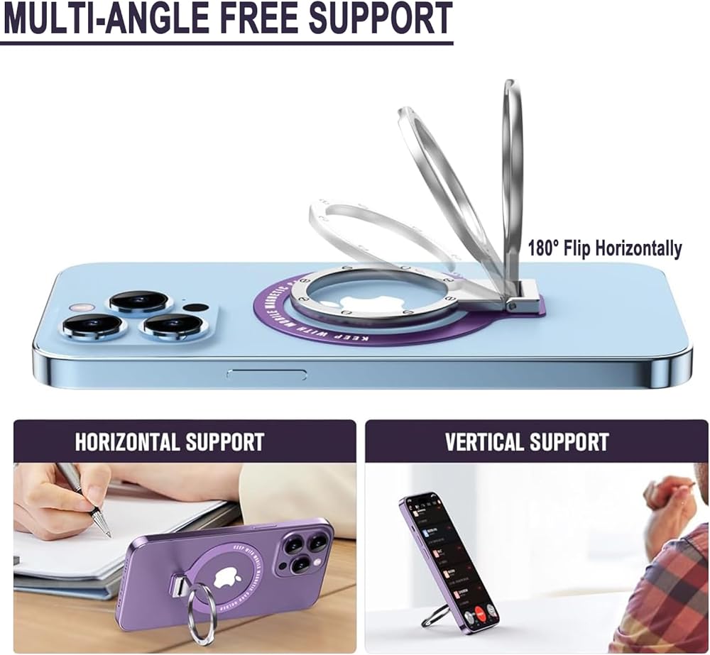 حامل حلقة الهاتف لخاتم Magsafe - فائق الرقيق (0.3 مم) للملصقات Magsafe و Coell Phone Ring Finger Kickstand متوافق مع إكسسوارات iPhone Samsung - Silver