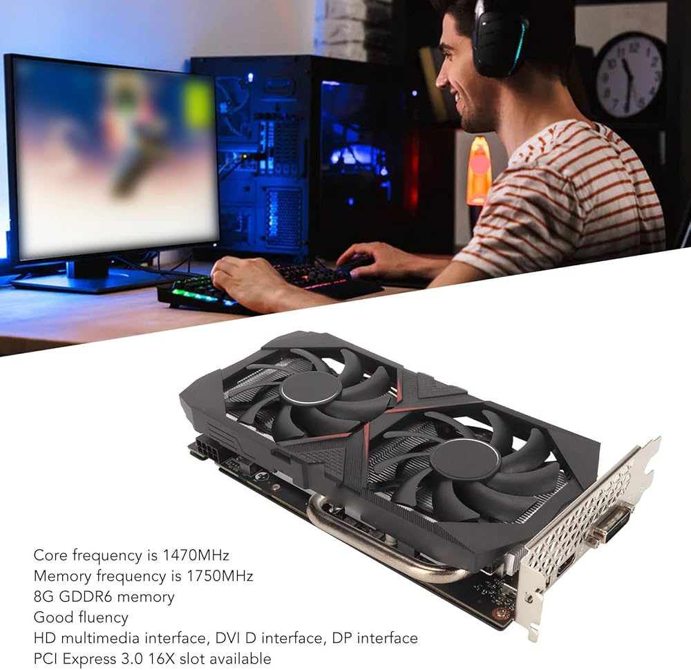 1. 8G GDDR6: The card has a core frequency of 1470MHz, memory frequency of 1750MHz, and 8G GDDR6 memory for glossy performance.