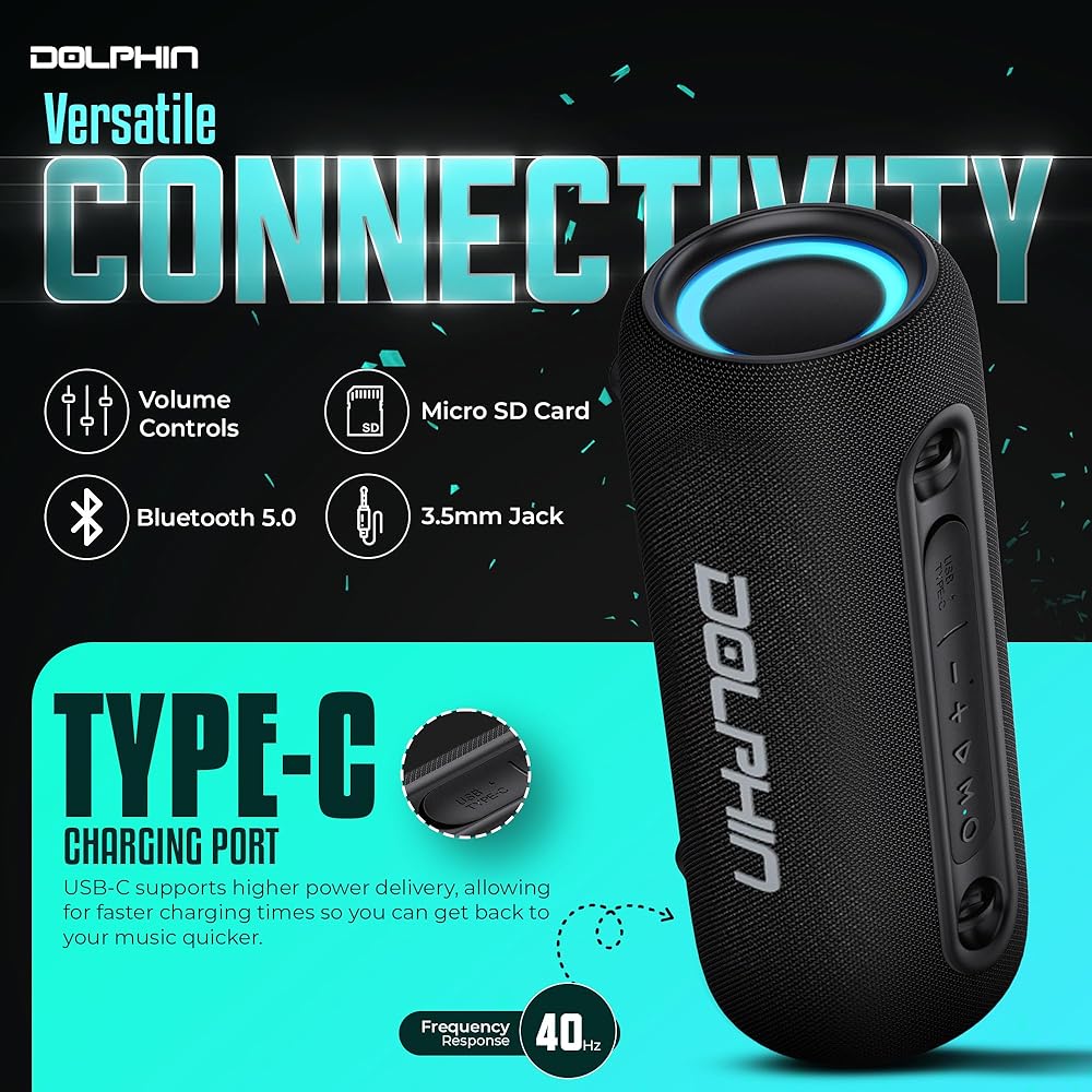 مكبر صوت بلوتوث Dolphin LX-30 ، 26 واط ، صندوق بوم بومب ، مقاوم للماء IPX5 ، بطارية طويلة الأمد ، باس ، 5.3 ، حمام سباحة ، دش ، شاطئ ، حزام W في الهواء الطلق ، قابل لإعادة الشحن