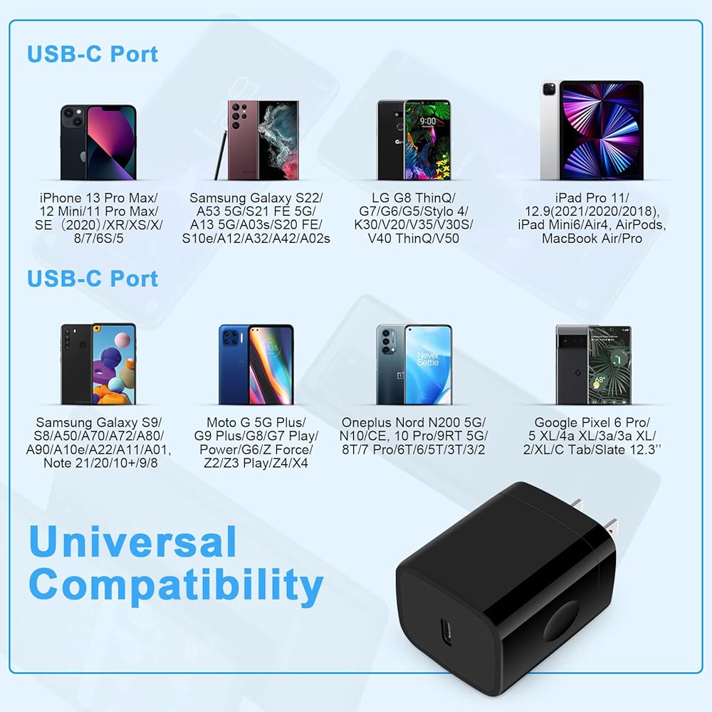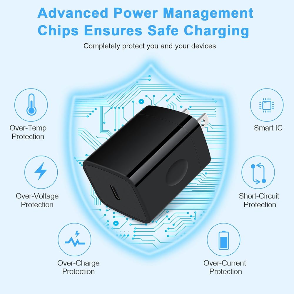 【FAST USB C Charger Wall Charger】 مربع شاحن USB C مقترنًا مع كابل USB C إلى C 6 أقدام إلى C يوفر شحن سريع وفعال ، ما يصل إلى 3x أسرع من شاحن 5W. شحن Samsung Galaxy S21 Fe/A13 5G/A12 بنسبة تصل إلى 50 ٪ في 30 دقيقة. نظام الحماية المتعددة المدمج ، وتجنب الجهد الزائد ، والإفراط في الرسوم والتسخين. سيتوقف الشحن تلقائيًا عندما تكون الطاقة ممتلئة.