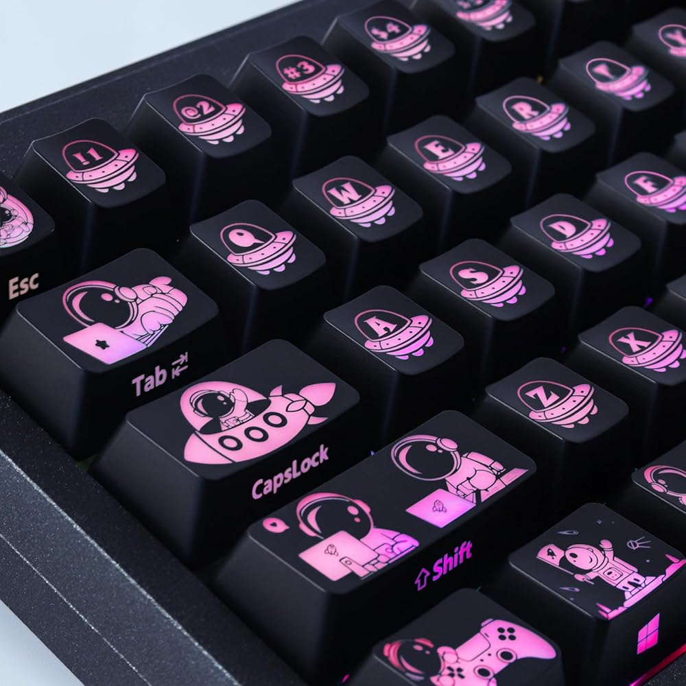 • 【Letter Side Engraving Backlight Keycaps】: The upper layer of PBT material and the lower layer of transparent material allow RBG to perfectly penetrate the letters and make it easy to use the keyboard in the dark. The letters are engraved on the side, so you can see the letters clearly whether you are sitting or half lying on the chair, making you more relaxed and comfortable