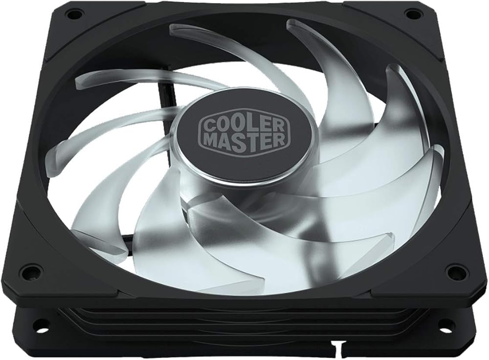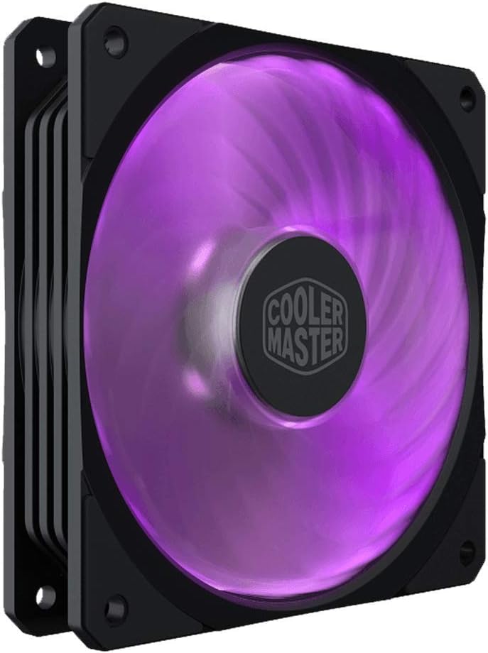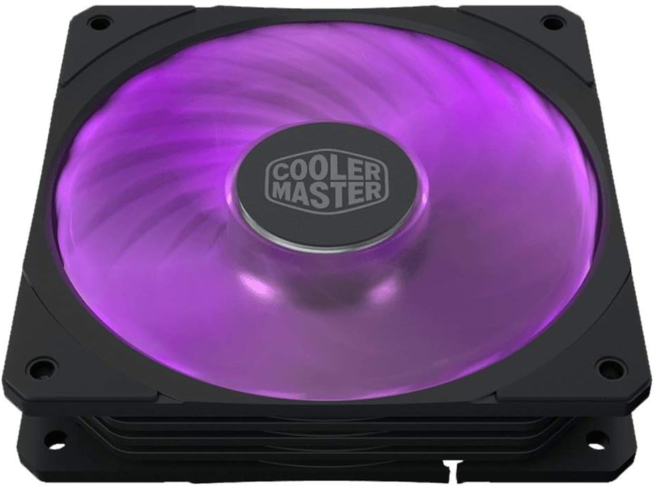 Cooler Master MasterFan SF120R RGB Suitable for: Computer case, Type: Cooler, Fan diameter: 12 cm. Product colour: Black, Number of fans: 1 fan(s), Illumination colour: Multi. Fan connector: 4-pin + 4-pin. Power consumption (typical): 1.92 W, Rated voltage: 12 V, LED voltage: 5 V. Width: 120 mm, Depth: 120 mm, Height: 25 mm.