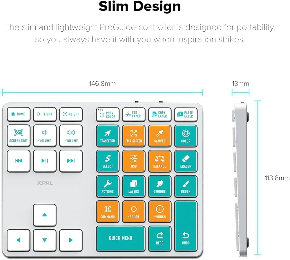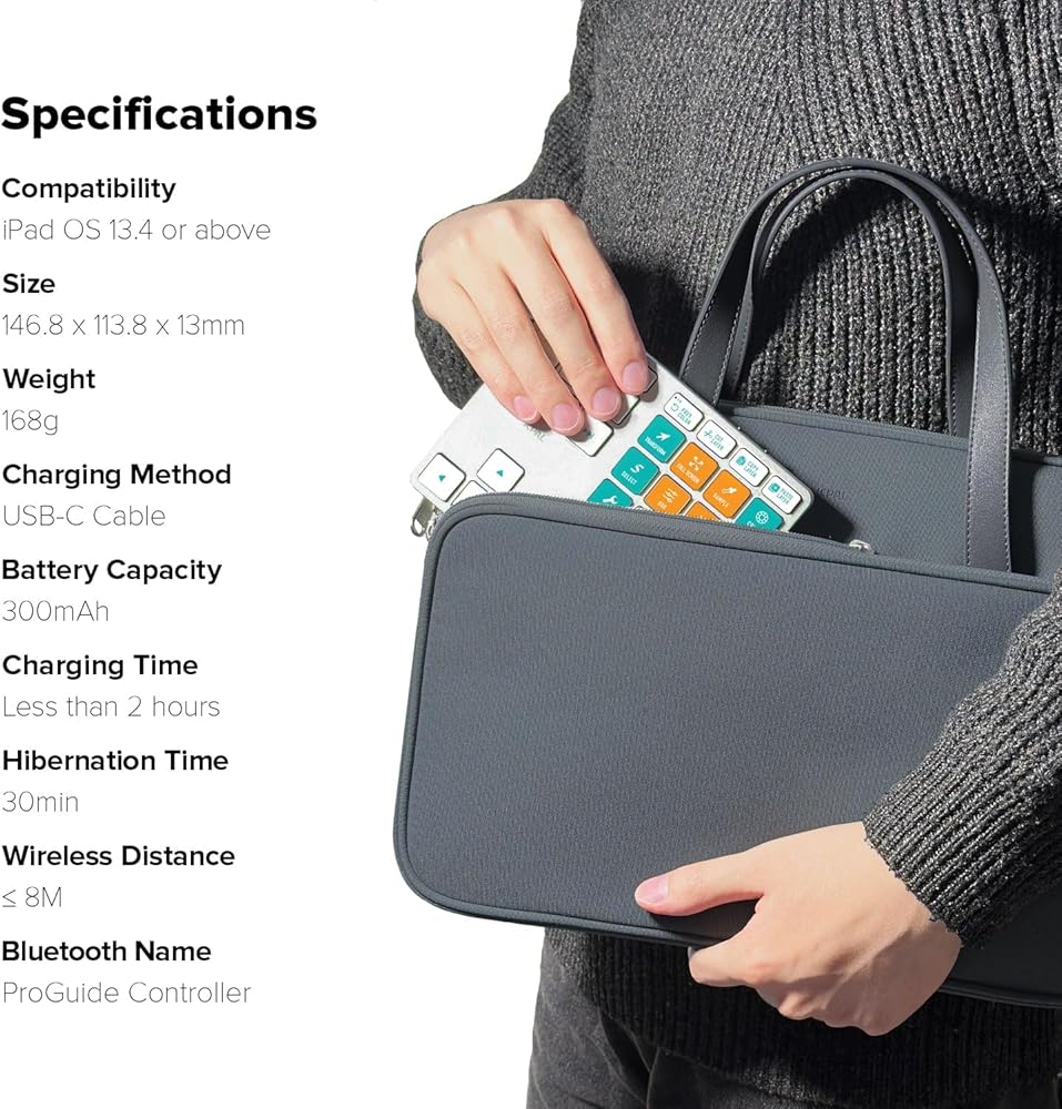 التحكم الكامل: تحتوي لوحة مفاتيح Proguide Mini Bluetooth على 22 عناصر تحكم محددة محددة يتم ترميزها بالألوان في مناطق على وحدة التحكم. وظيفة زر إضافية 13 التحكم في وظائف iOS.