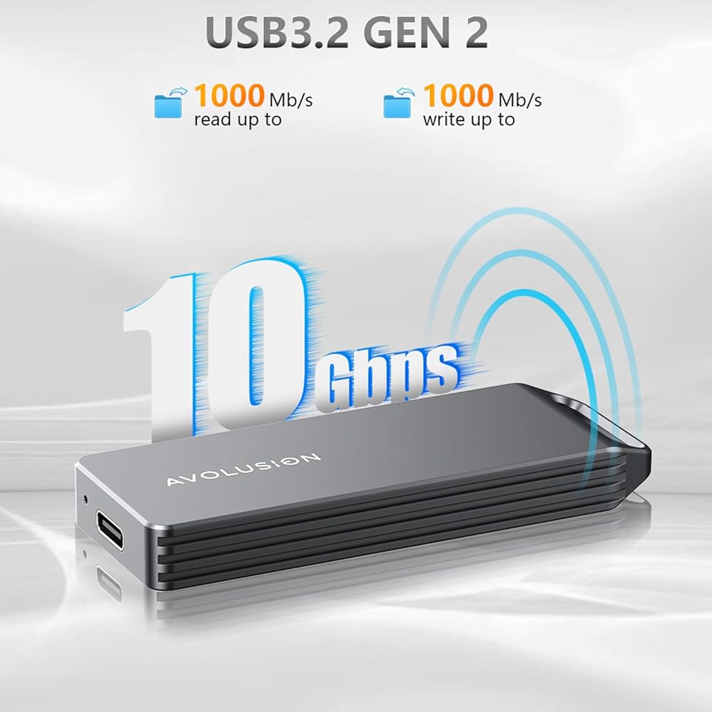 Avolusion S2 1TB Portable SSD - Up to 1000MB/s - PC and Mac - USB 3.2 USB-C External Solid State Drive - S2-SSD-T1, Durable Aluminum Built Introducing the Avolusion S2 1TB Portable SSD with USB 3.2 Gen 2 – your versatile, high-speed storage solution, perfect for work, gaming, and mobile use. Encased in a robust aluminum body for optimal heat dissipation, this SSD is built to keep your data safe and your device running efficiently.
